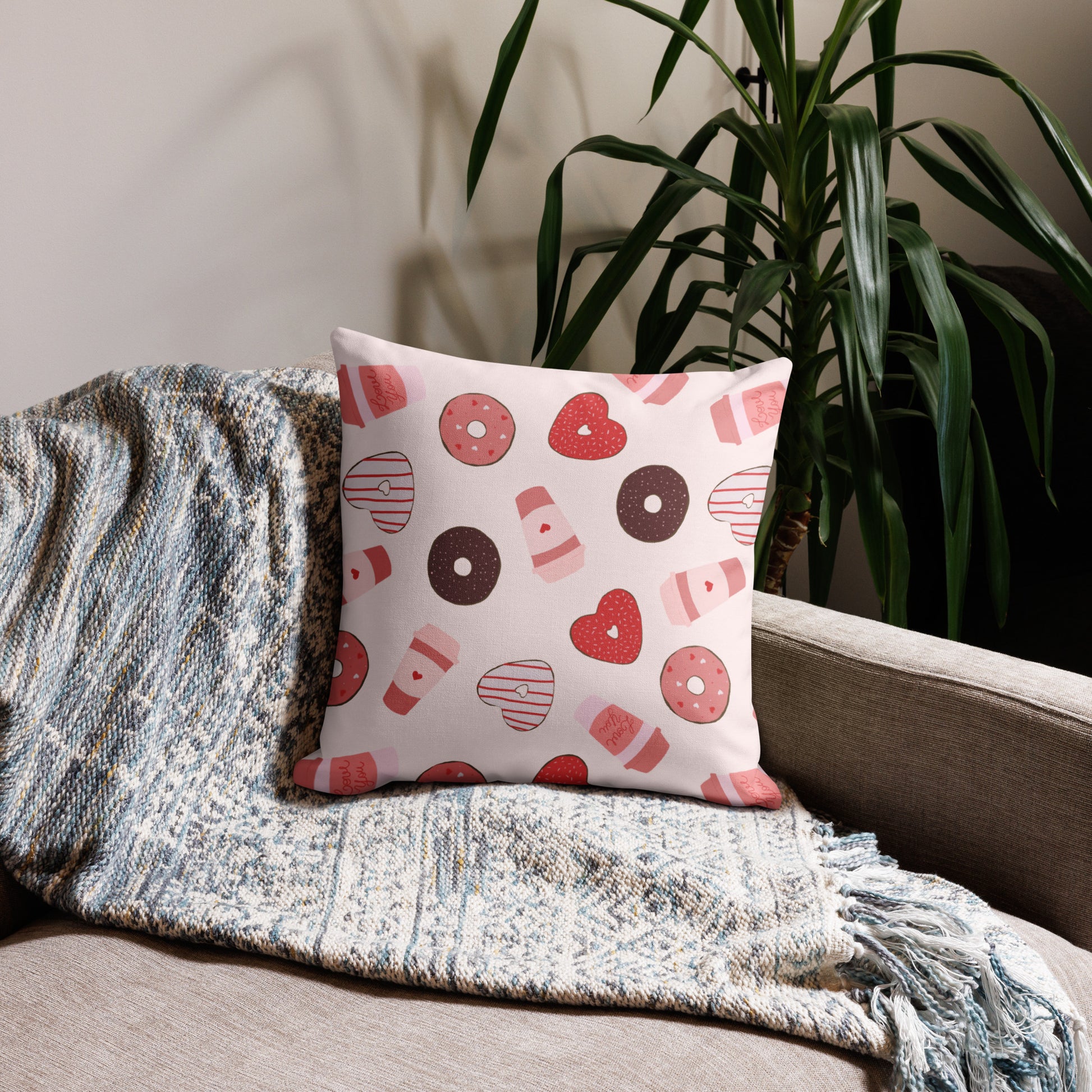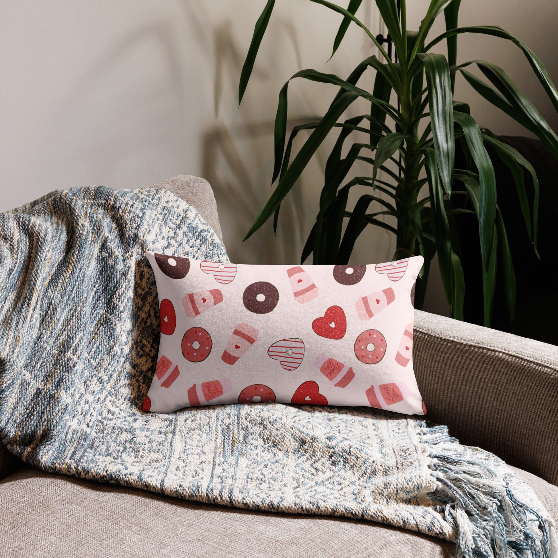 Looking for something extra cute this Valentines Day? Look no further than this adorable coffee and donuts patterned pillow. This premium feel pillow with a shape-retaining insert is just what you're looking for! It'll make any room luxurious and provide the perfect excuse for a quick power nap.